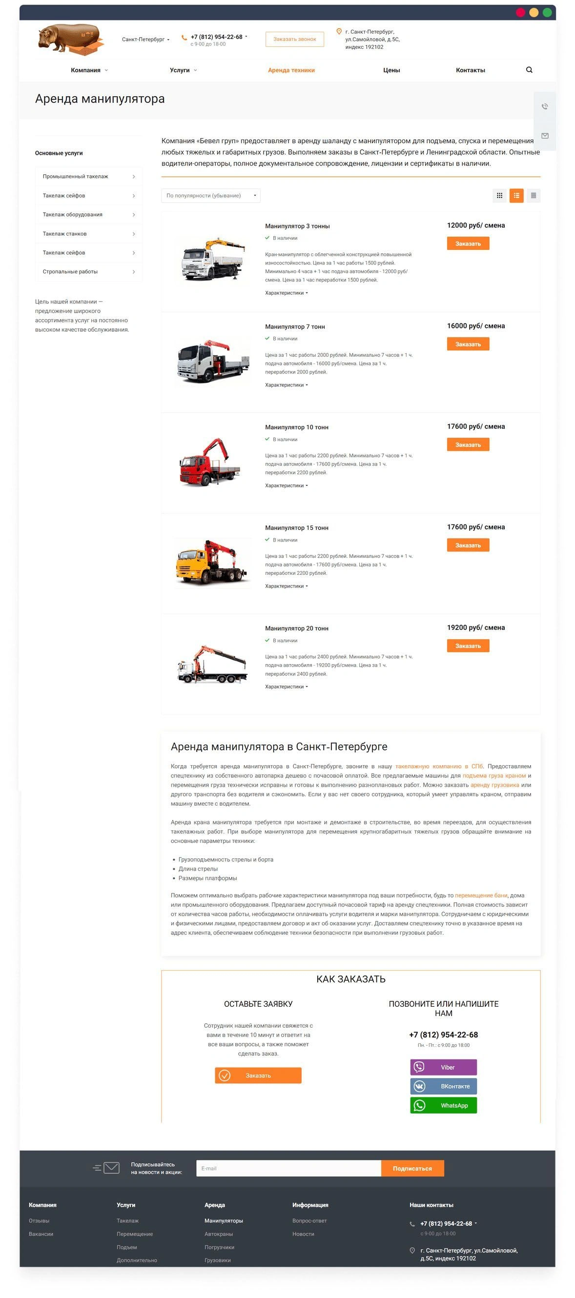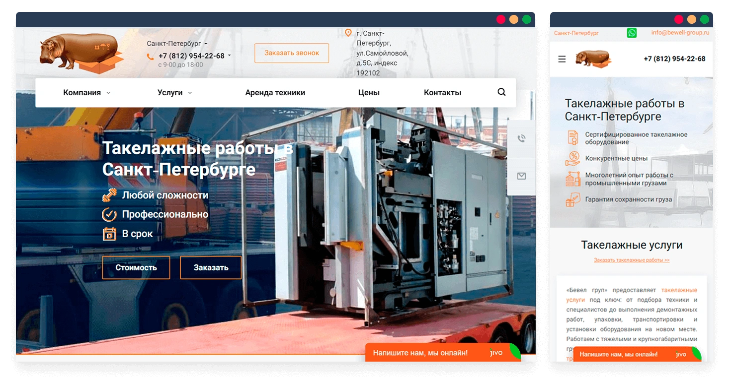 Цель: создать сайт по предоставлению такелажных услуг с соответствующим дизайном, удобным интерфейсом и понятной навигацией. Сделать ресурс конкурентоспособным, подготовить к дальнейшему продвижению в поисковых системах, в том числе и по регионам. Качественно представить услуги и тщательно проработать мобильную версию сайта.